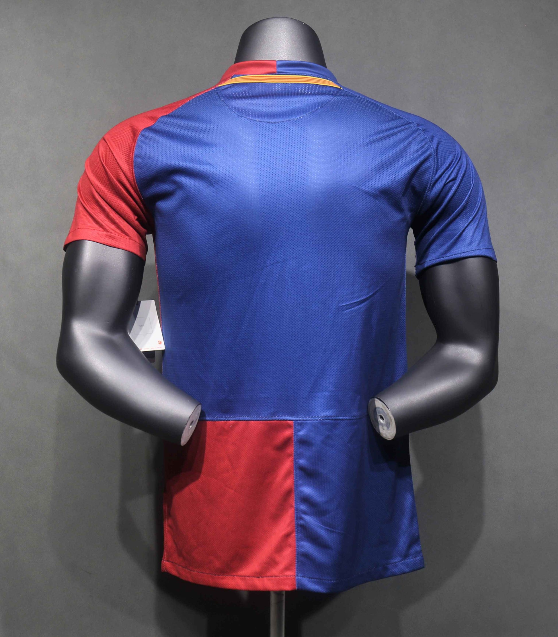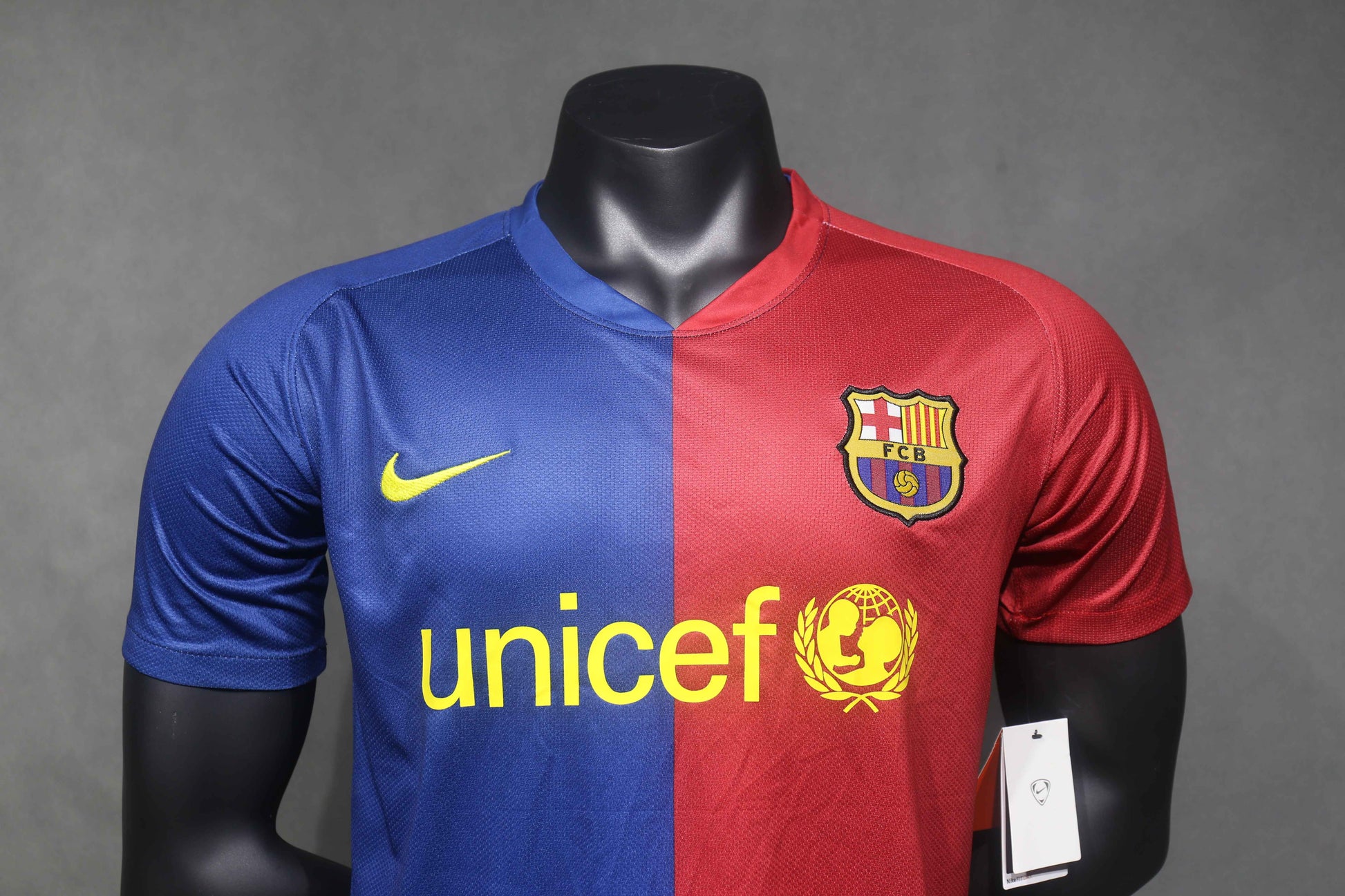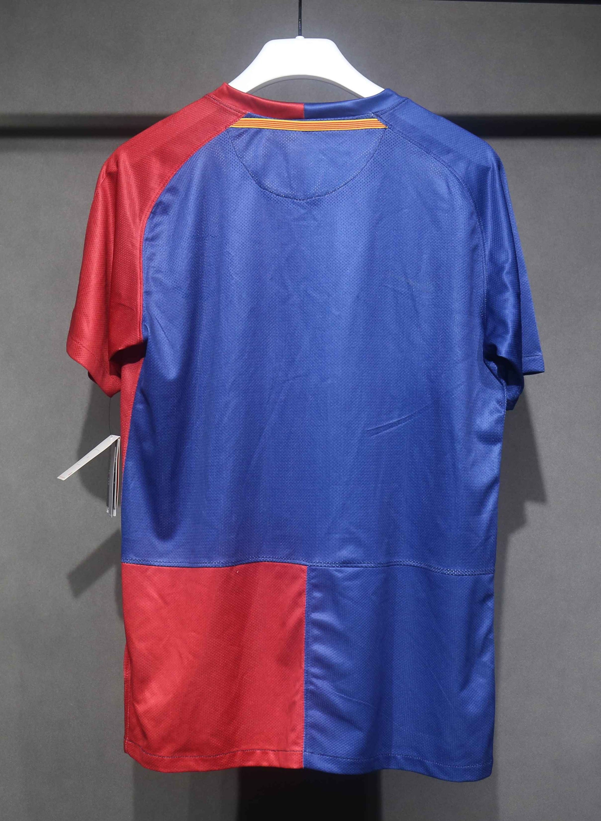 This jersey has a unique design that showcases the classic elements of Barcelona Football Club. The jersey features a left blue and right red color scheme, with the left half blue representing the club's traditional Catalan color and the right half red symbolizing the club's passion and vitality. The 'union' logo is printed on the chest, indicating the club's concern and participation in charitable causes. The front of the jersey also features the Barcelona team emblem, showcasing the team's identity and glory. The overall design not only reflects the history and culture of the club, but also showcases the fashion sense of modern football.